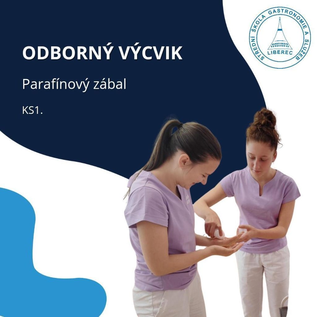 Žákyně prvního ročníku oboru Kosmetické služby si užívají podzimní počasí relaxem. Učí se parafínový zábal na ruce, který je blahodárný a krásně je prohřeje.